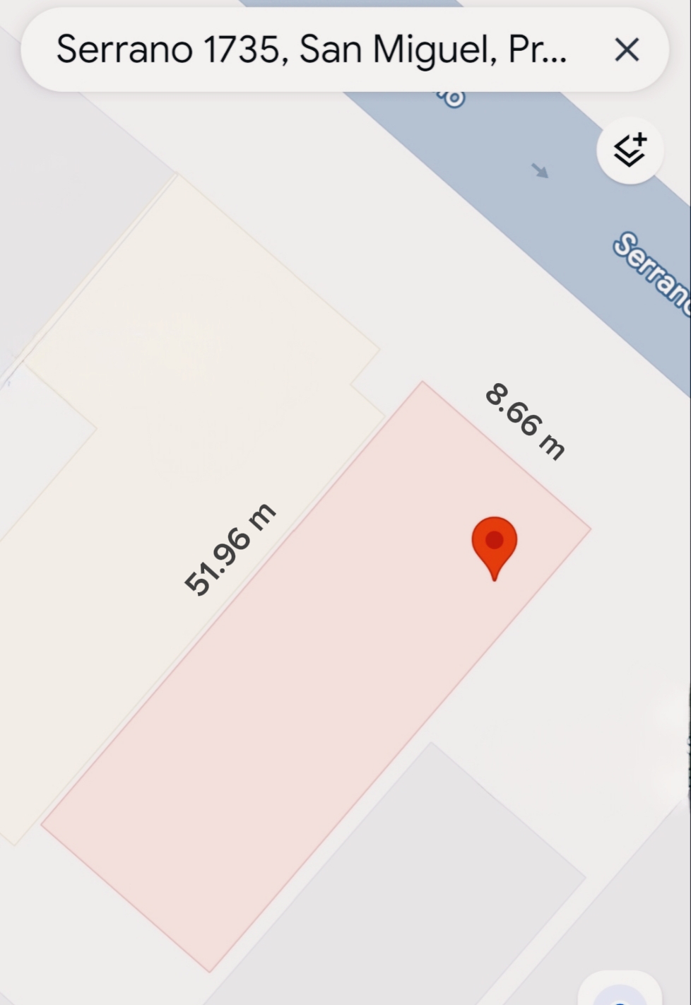 Detalle: Frente: 8,66 m x Fondo: 51,96 m